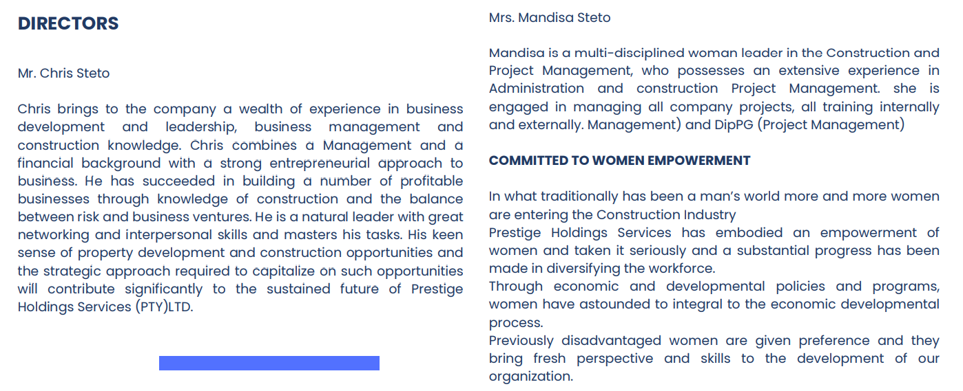 Prestige Holding Services is a group of black south